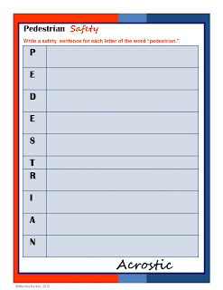 This activity focuses on pedestrian safety. The acrostic is in two formats - A 'complete the sentence' activity where students fill in the missing word and a blank sheet that allow students to be creative in writing their descriptions.